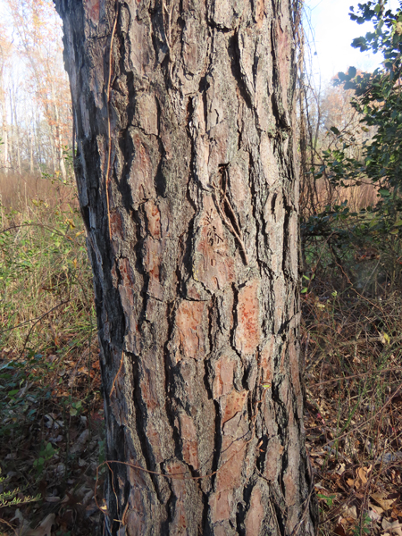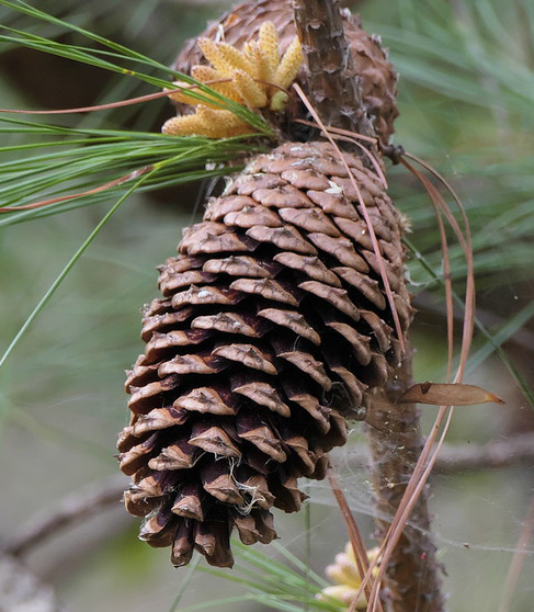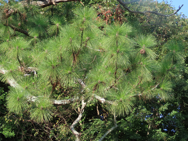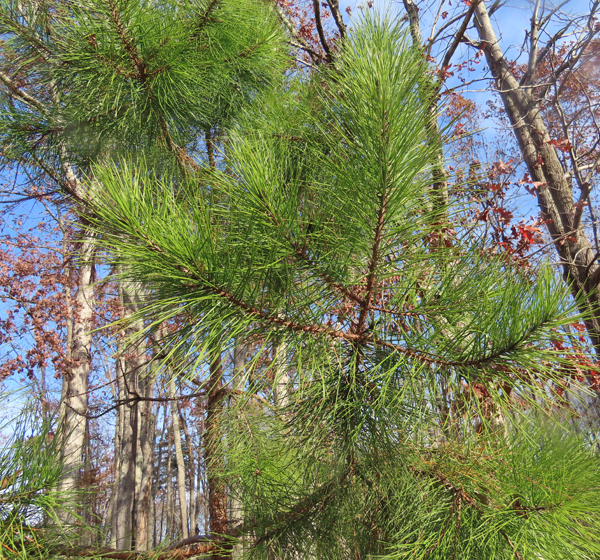 Needles: dark yellow-green needles, in bundles of three, 6″-10″ long with 1″ long sheaths, finely-toothed, stiff and slender, drop during the tree’s third year